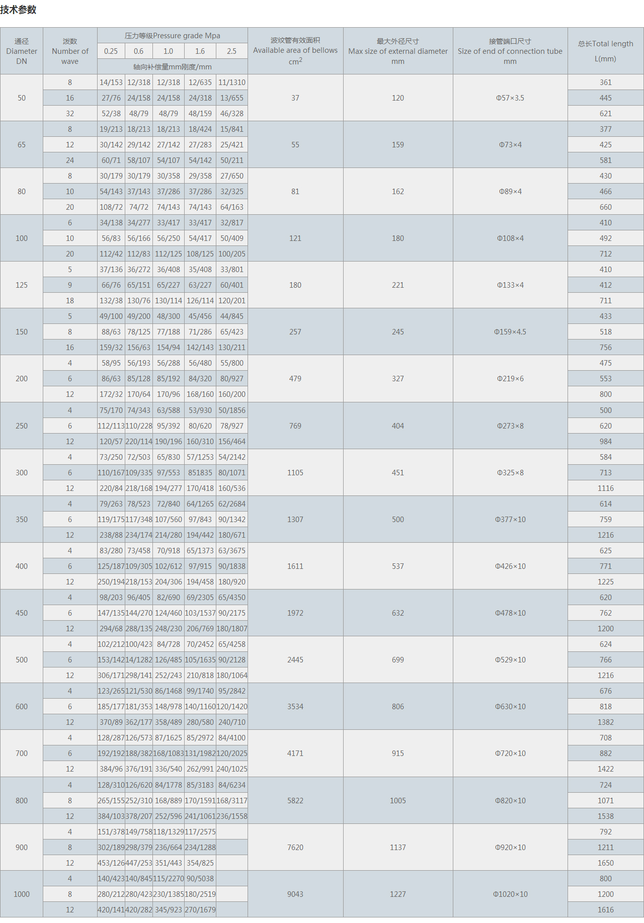 | 軸向補償量mm剛度/mm | ||||||||||