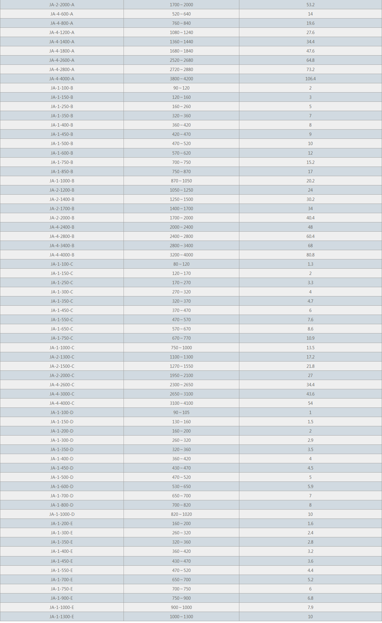 【產品型號】:JA-1-100~JA-9-10800
